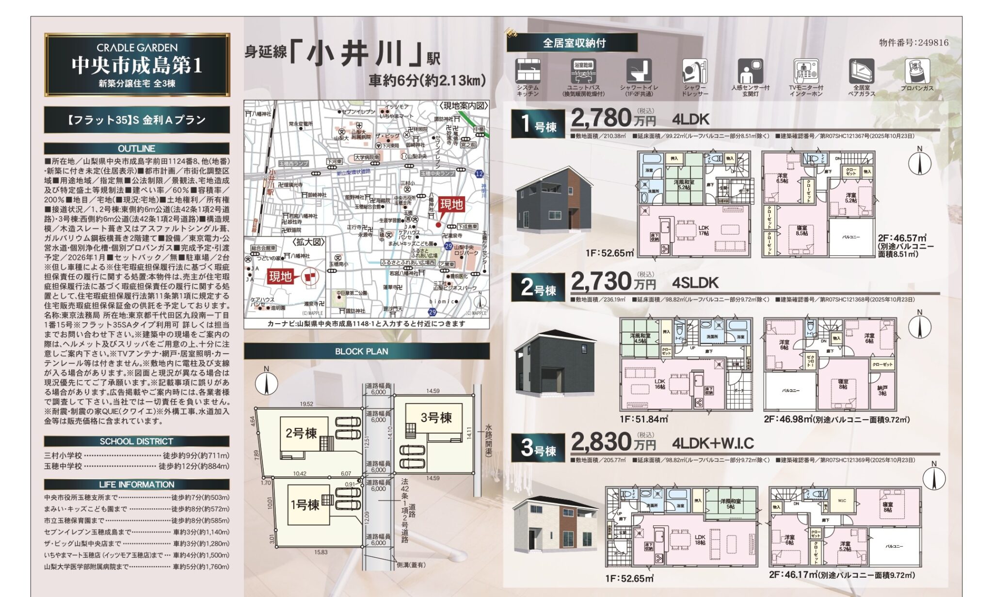 ★お知らせ★【中央市成島】全3棟!小井川駅利用・収納充実の新築建売住宅が登場🏠 令和8年1月10日☺